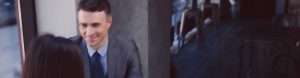 Businesswoman and businessman discussing